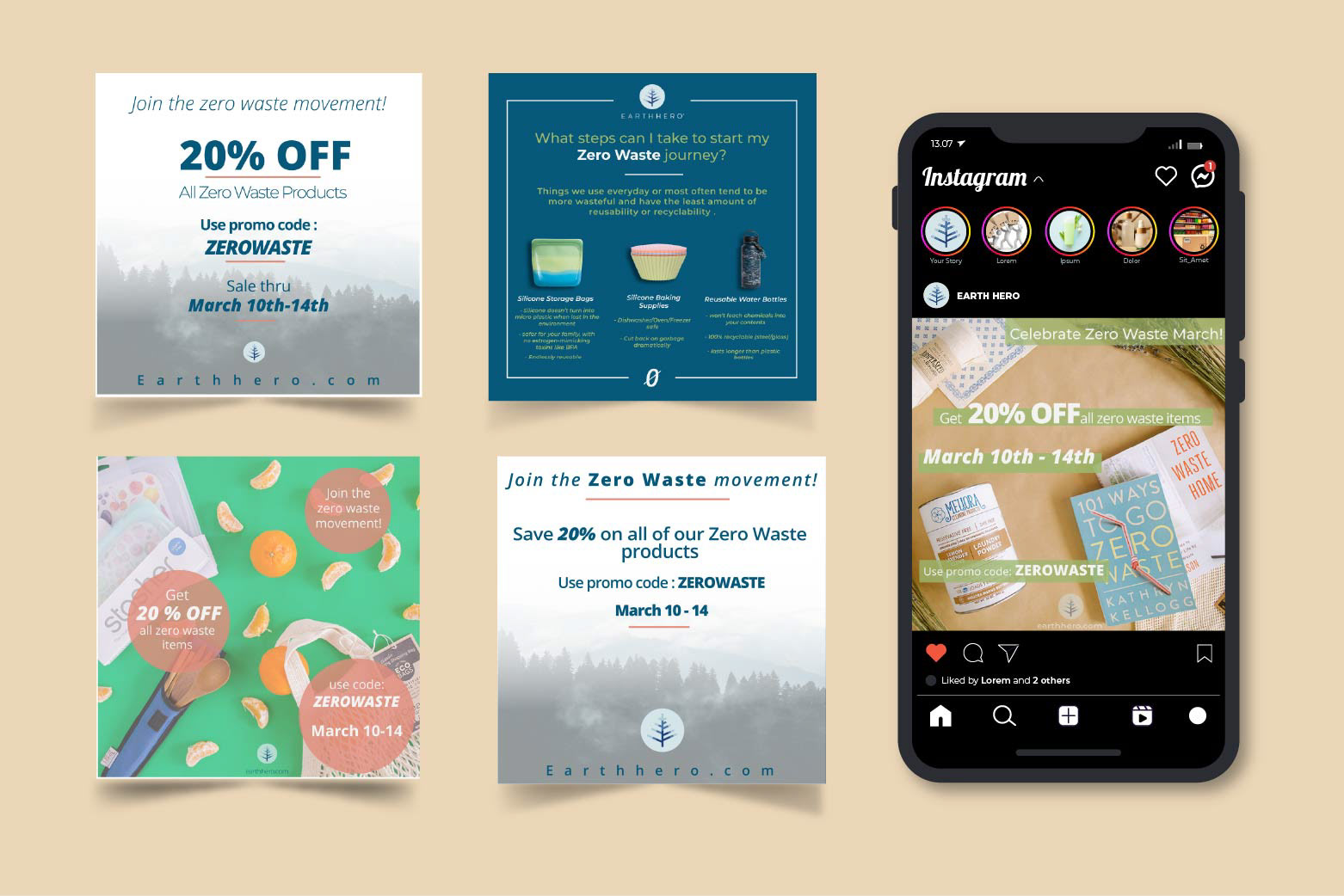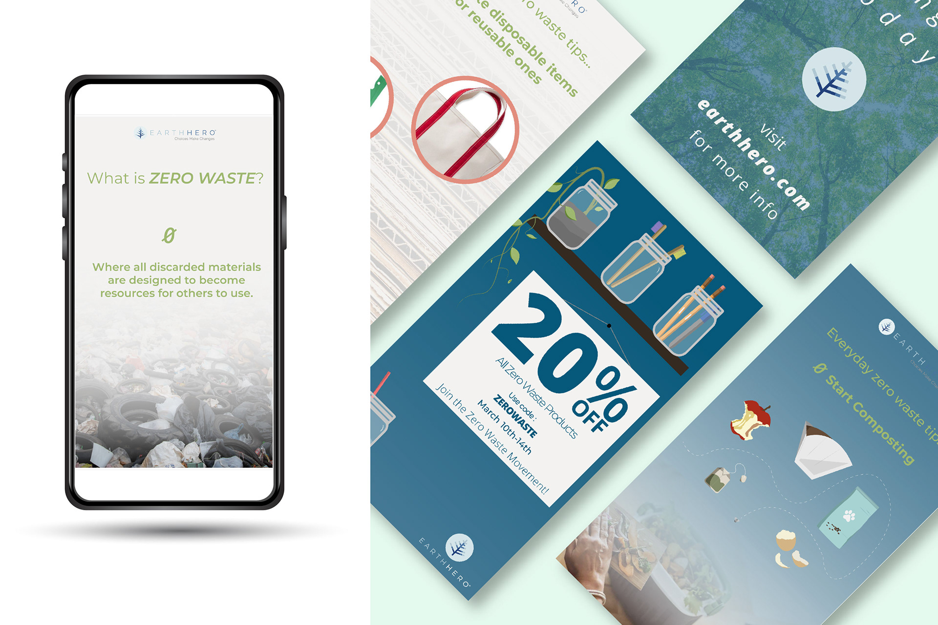 Was tasked to create social media and website graphics for a Zero Waste initiative for a sustainable wholesale company to both inform the customer of what zero waste means and to showcase the current specials.