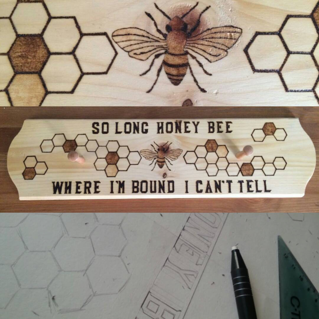 One of the first custom coat racks I've been able to do for a client. I am a huge fan of Bob Dylan, as well as bees in general. So what better way to incorporate both within a project using clever wordplay.